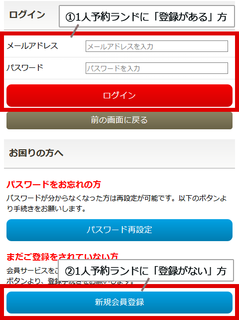 ②VGWEBもしくは1人予約ランドに登録をされていない方