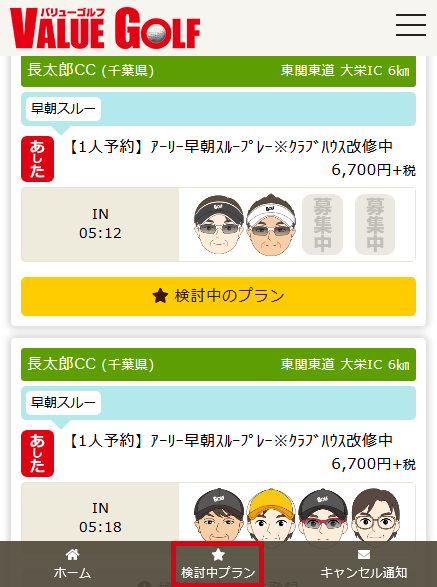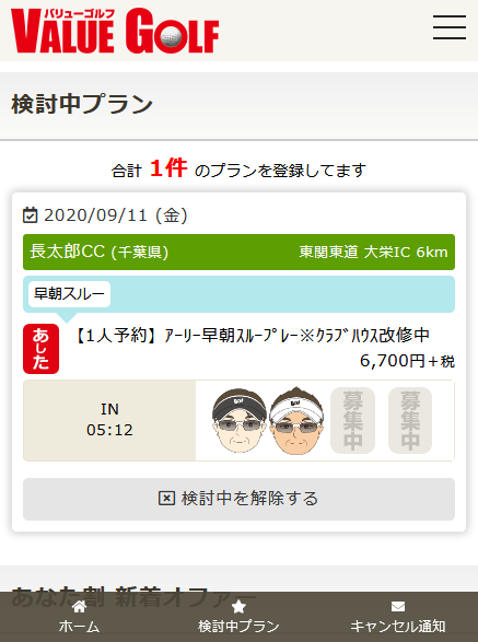 1. ページ下部に固定されている「検討中のプラン」を選択